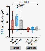 图14 下调期间的P300振幅显著高于控制组